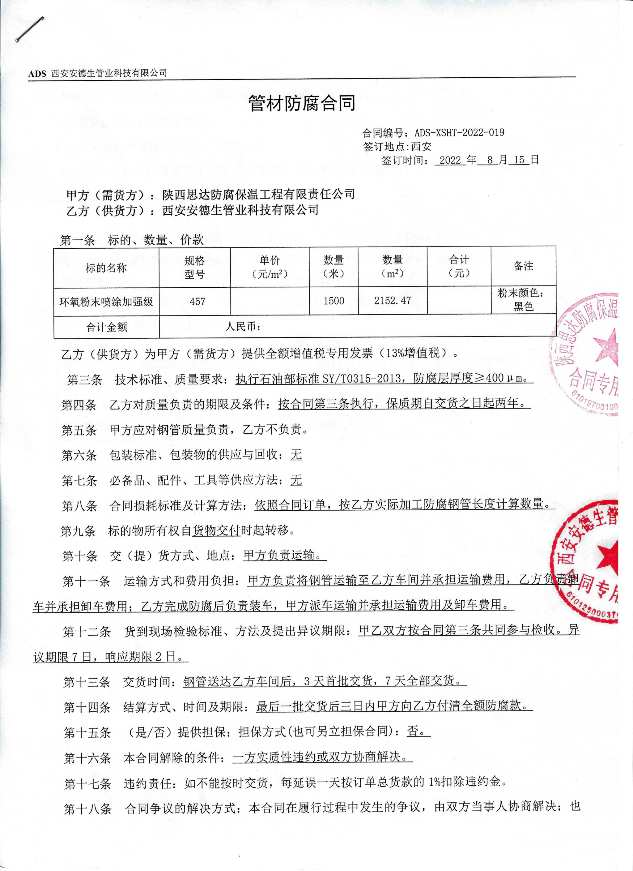 陜西思達(dá)防腐保溫工程有限責(zé)任公司鋼管外防腐項(xiàng)目