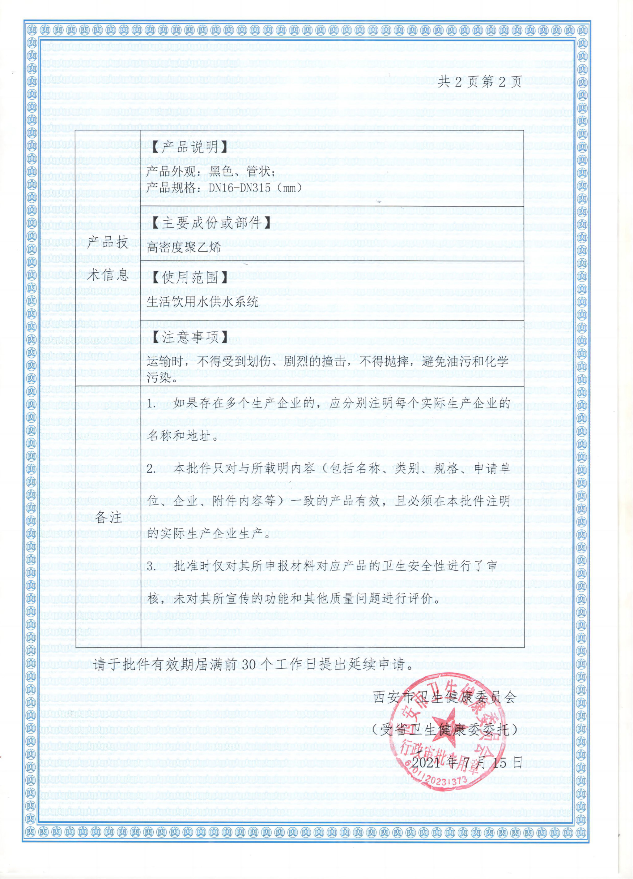 國(guó)產(chǎn)涉及飲用水衛(wèi)生安全產(chǎn)品衛(wèi)生許可批件