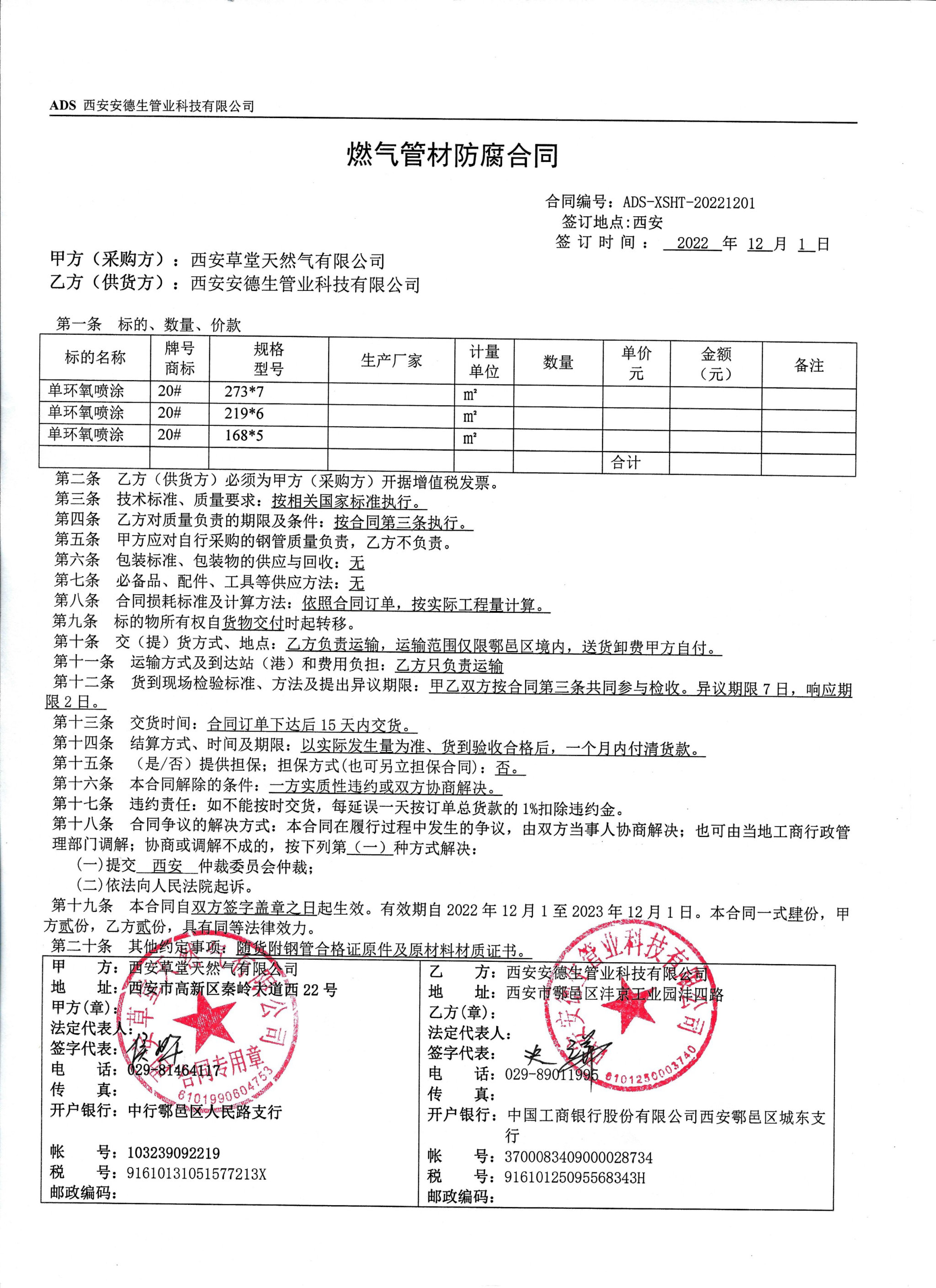 西安草堂天然氣有限公司鋼管外防腐項(xiàng)目