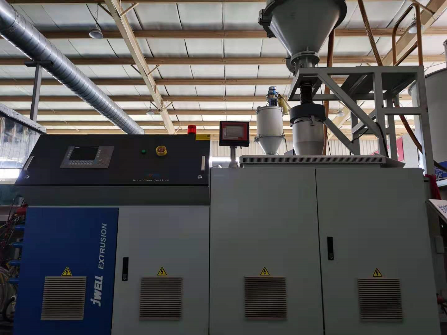 米重系統(tǒng)采用高精度快速稱重模塊,持續(xù)計量擠出機物料消耗量,嵌入式控制單元實時采集生產(chǎn)線相關數(shù)據(jù)、螺桿轉速、牽引機速度形成閉環(huán)控制系統(tǒng),在設定米重/擠出量后,米重控制系統(tǒng)根據(jù)設定值,實時調(diào)節(jié)螺桿轉速、牽引速度,從而達到管材壁厚的實時控制目的。